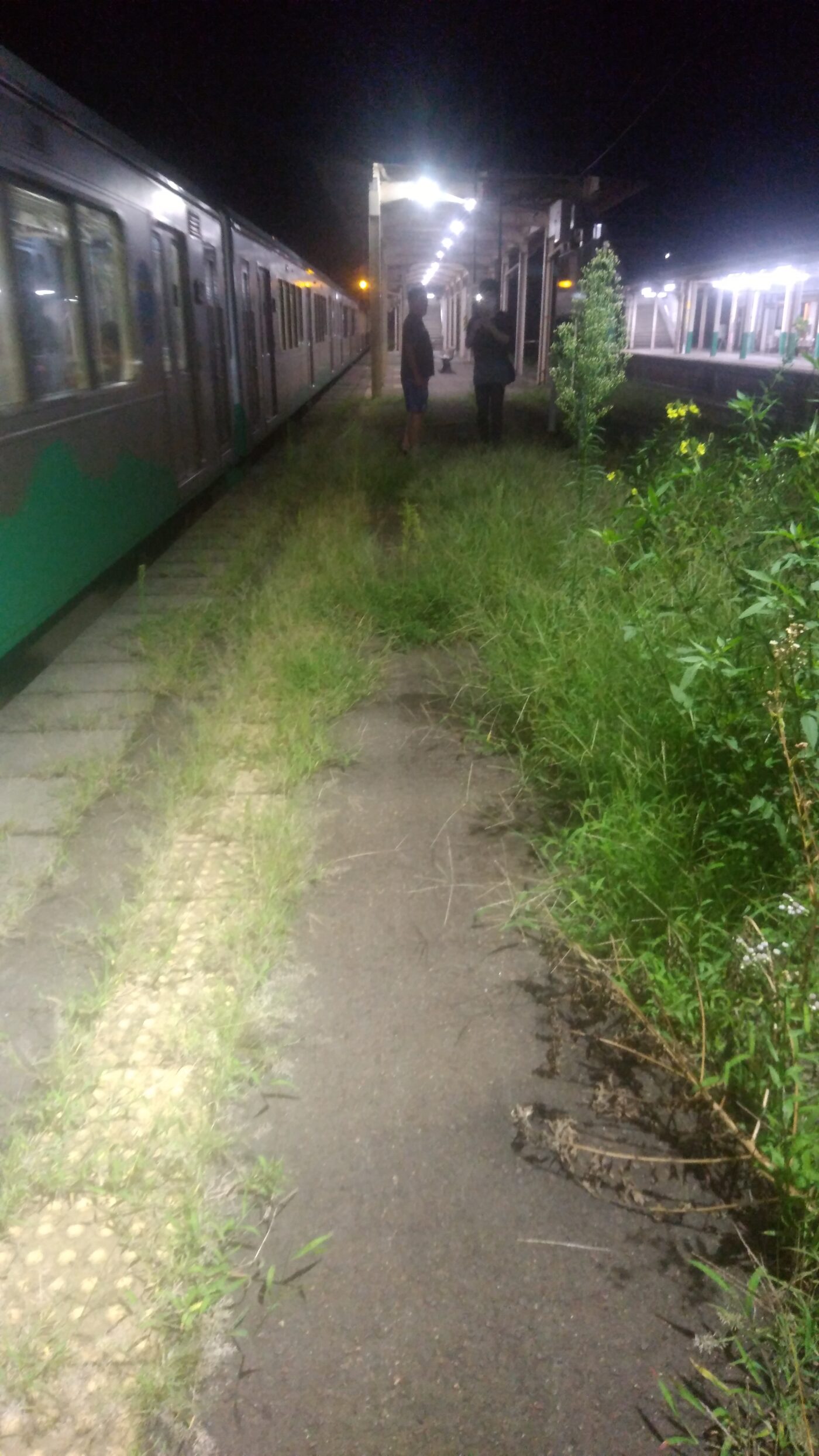 一番後ろの車両が止まるところは除草されていないのね。普段は 1、 2両だから。