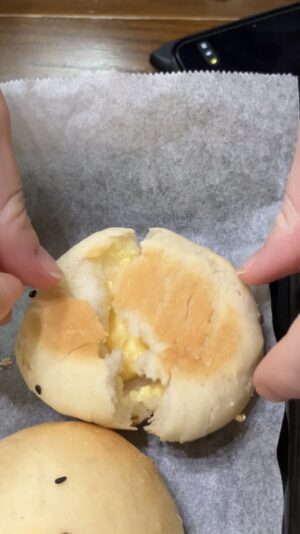 少し甘さが足りず、イースト菌多めだったので今回は言い具合に調整し、そして中にカスタードクリームとマヨコーンを作って入れてみた!!